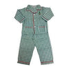 Cozy green plaid pajama set with festive red trim. Soft, classic, and perfect for Christmas morning, family traditions, and holiday photos.