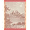 Out in the open air, like a vintage postcard, the mountain offers us the majestic splendor of its peaks. Combed yarns (long fibers). Jacquard weaving (color warp and weft).